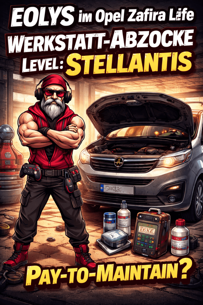 Denn was sich im Opel Zafira Life rund um das Eolys-Additiv abspielt, ist kein Wartungssystem – das ist ein Sidequest mit Paywall.